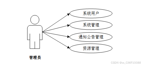 管理员:系统用户、系统管理、通知公告管理、资源管理等功能。