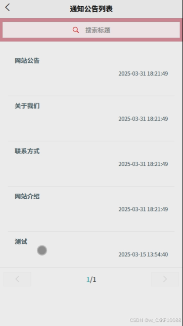 该功能展示APP内的通知公告详情。通知公告界面如图5-2所示。