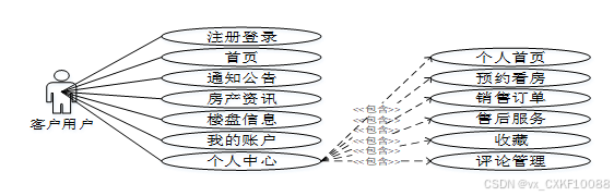 - 个人中心:个人中心是用户管理个人活动和历史记录的地方。在这里,用户可以查看个人首页,管理预约看房的记录,查看和管理销售订单,申请售后服务选项,管理收藏的楼盘和资讯,以及管理自己的评论。