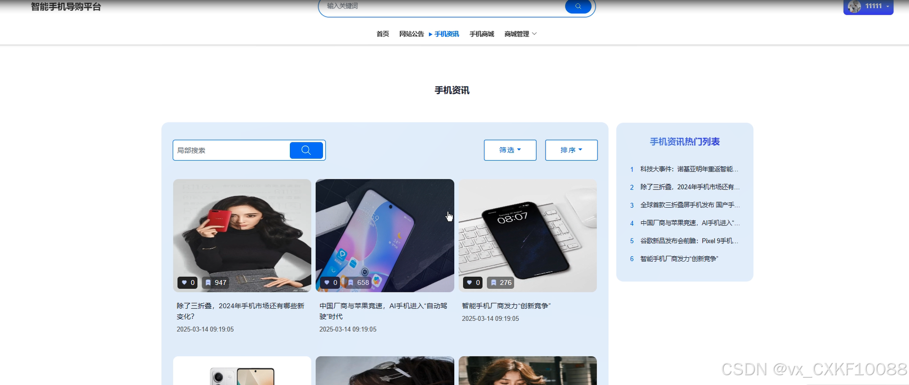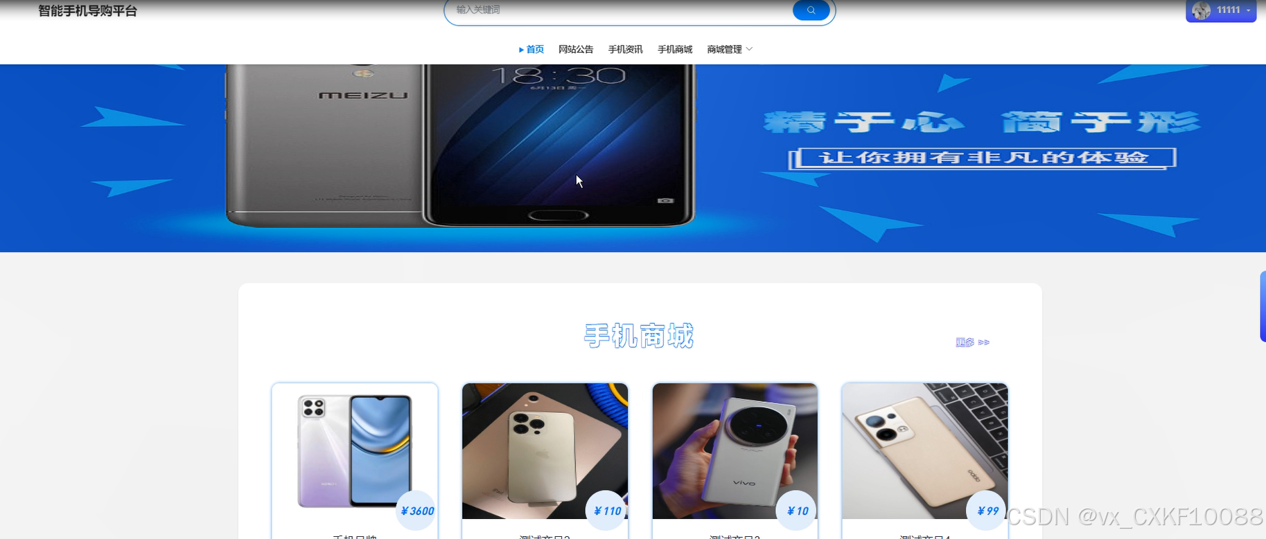 首页:展示热门手机商品、手机商城资讯及最新公告信息,帮助用户快速了解平台动态。支持搜索和筛选功能,提升用户体验。