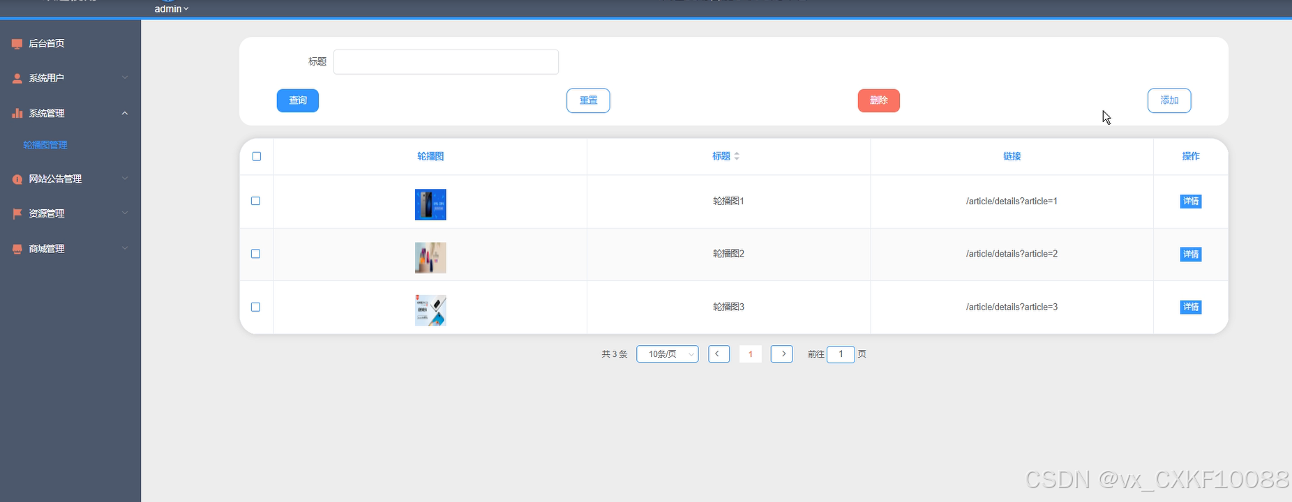 系统管理:管理员配置首页轮播图内容,支持图片上传和链接设置。