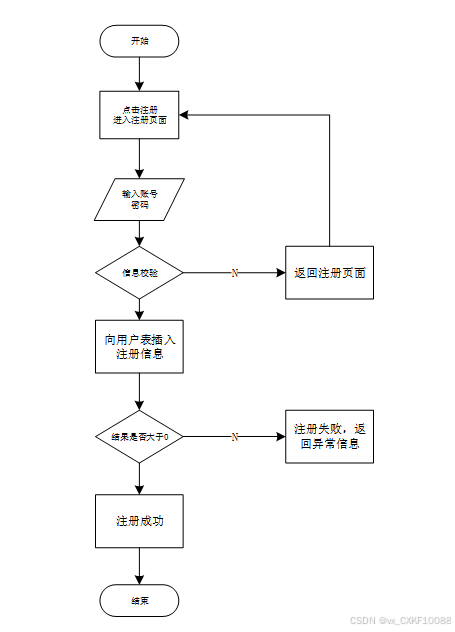 注册的过程,第一部分是账号的注册,第二部分是信息完善。在业务开展过程中,管理员可对用户信息进行修改等管理操作,注册流程如图 3-3所示。