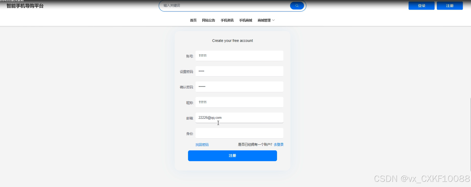 注册登录:注册用户需要购买浏览手机信息需要注册账号密码,包括设置账号、密码、昵称、邮箱等信息,注册完成后通过后台管理员审核通过后方可进行登录。