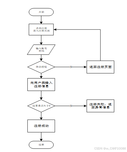 注册的过程,第一部分是账号的注册,第二部分是信息完善。在业务开展过程中,管理员可对用户信息进行修改等管理操作,注册流程如图3-3用户注册流程图所示。