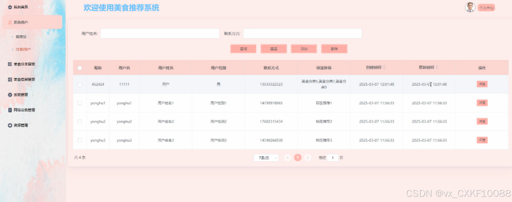 系统用户(管理员、注册用户):系统用户管理功能允许管理员对平台的用户进行管理,区分管理员和普通注册用户,设置不同权限,确保后台数据安全和操作权限的分配合理,同时提供用户信息的查看、修改和管理功能,保障系统的稳定和高效运行。