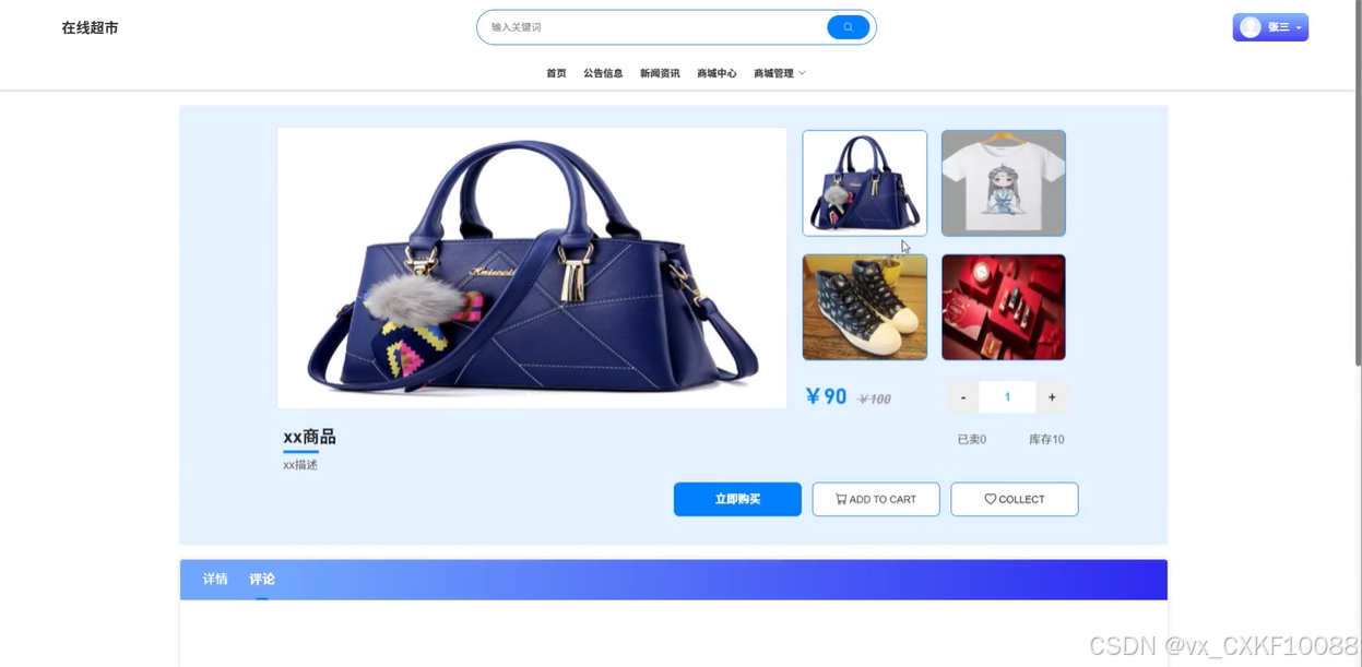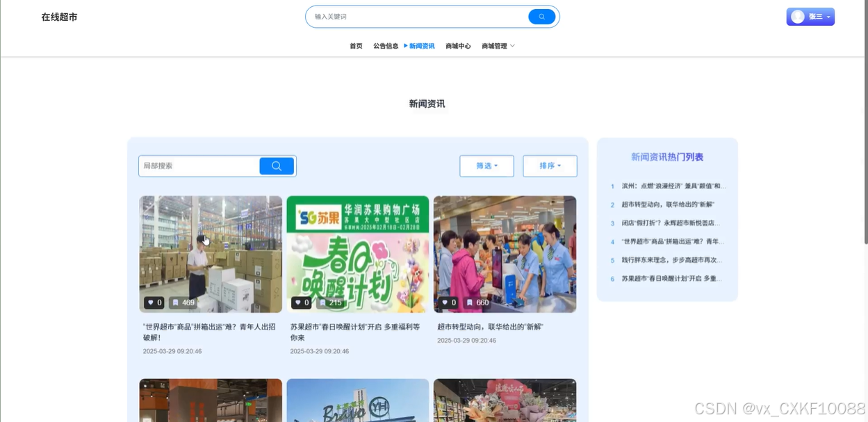 This system is based on the SpringBoot framework, Vue framework, and web technology, and has designed and implemented an online supermarket platform that provides complete functions such as product browsing, search, shopping cart, and order management. Users can easily view product details, select products, add them to their shopping cart, and complete purchases through different payment methods through the system's front-end interface. The backend management system allows administrators to manage product information, orders, users, announcements, etc., ensuring the efficient operation of the platform. The system has implemented a dynamic user interface through the Vue framework, enhancing the user experience.