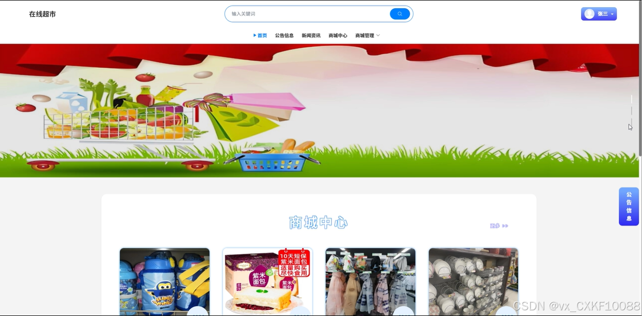 关键词:SpringBoot,Vue,Web技术,在线超市。