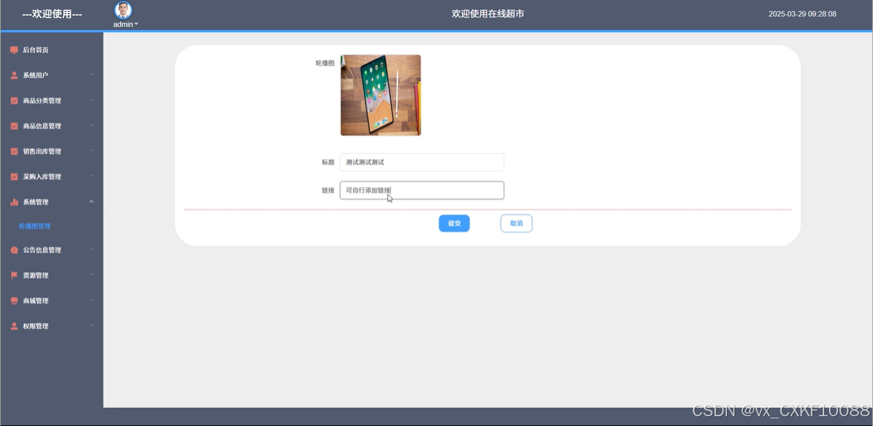 系统管理:管理员可以管理系统的轮播图内容,进行查看、搜索、增删改查操作,确保首页展示内容及时更新,提升用户体验。