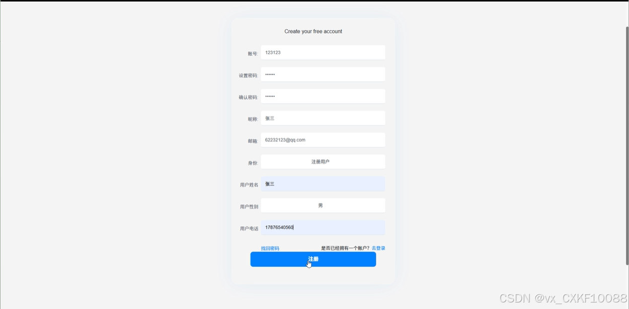 前端注册用户模块: