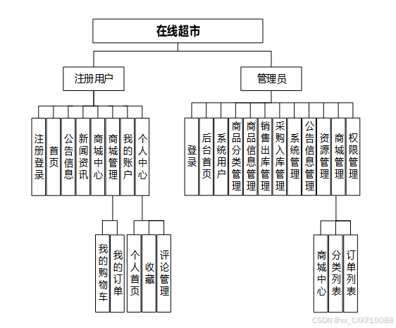 在线超市划分为了前端模块和后端模块两大部分。
