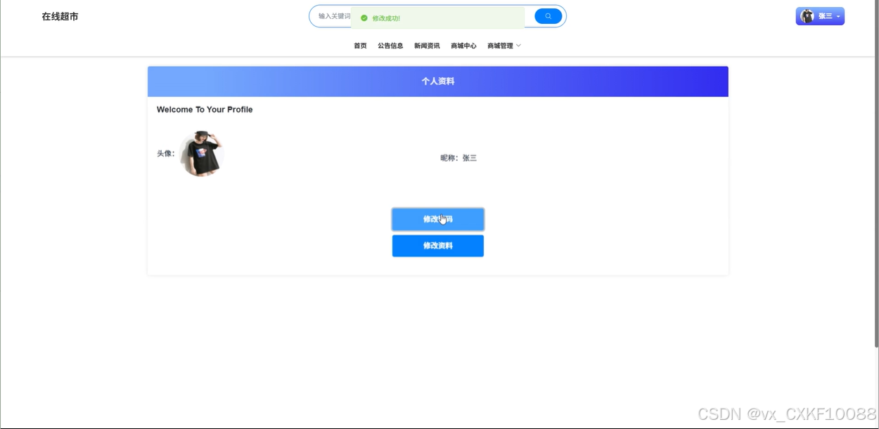 首页:在首页,用户可以操作导航栏,查看平台的轮播图、商城中心、公告信息、新闻资讯、商城管理等内容。用户还可以通过输入关键词进行全网搜索,查找感兴趣的商品和信息,同时可以进入个人账户,修改个人资料。