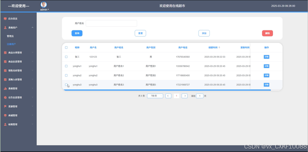 采购入库管理:管理员负责商品的采购入库管理,包括查看、修改商品的入库详情,进行商品采购的查询、搜索、重置和删除等操作,确保商品供应的稳定性。