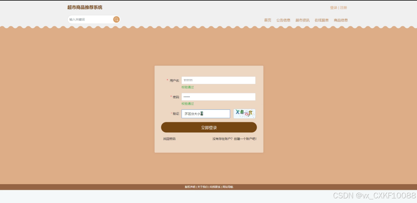(2)公告信息:用户可以通过公告信息栏了解系统或超市的重要通知。