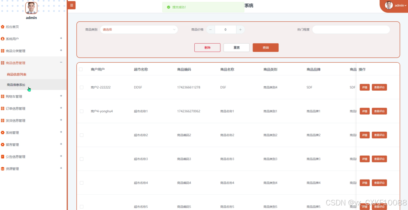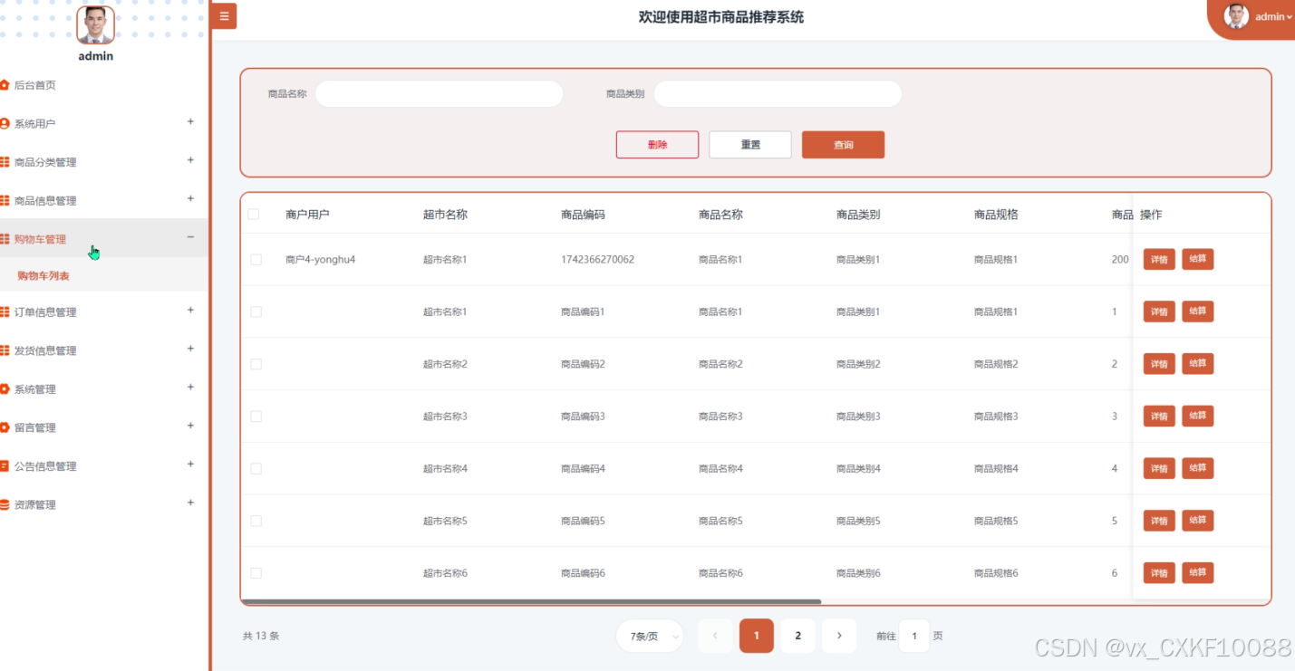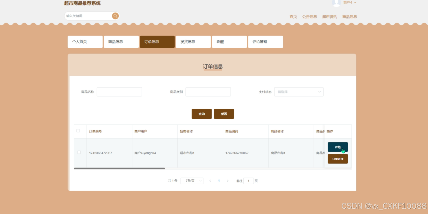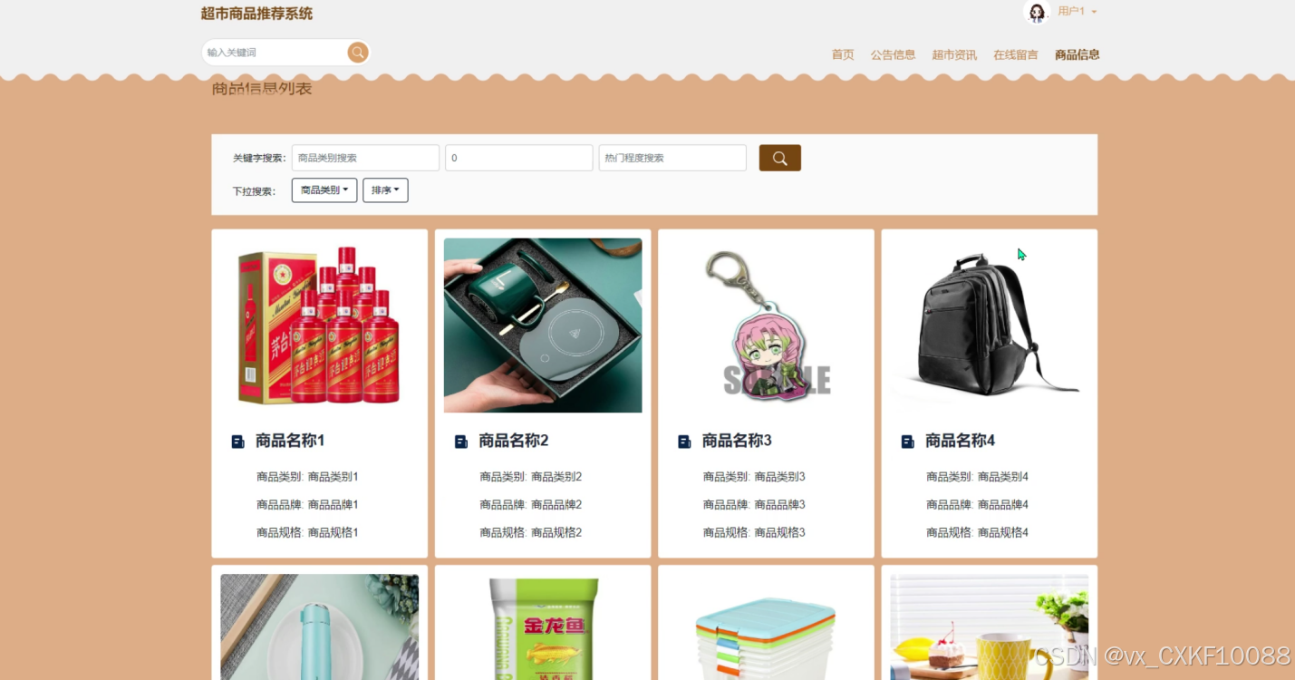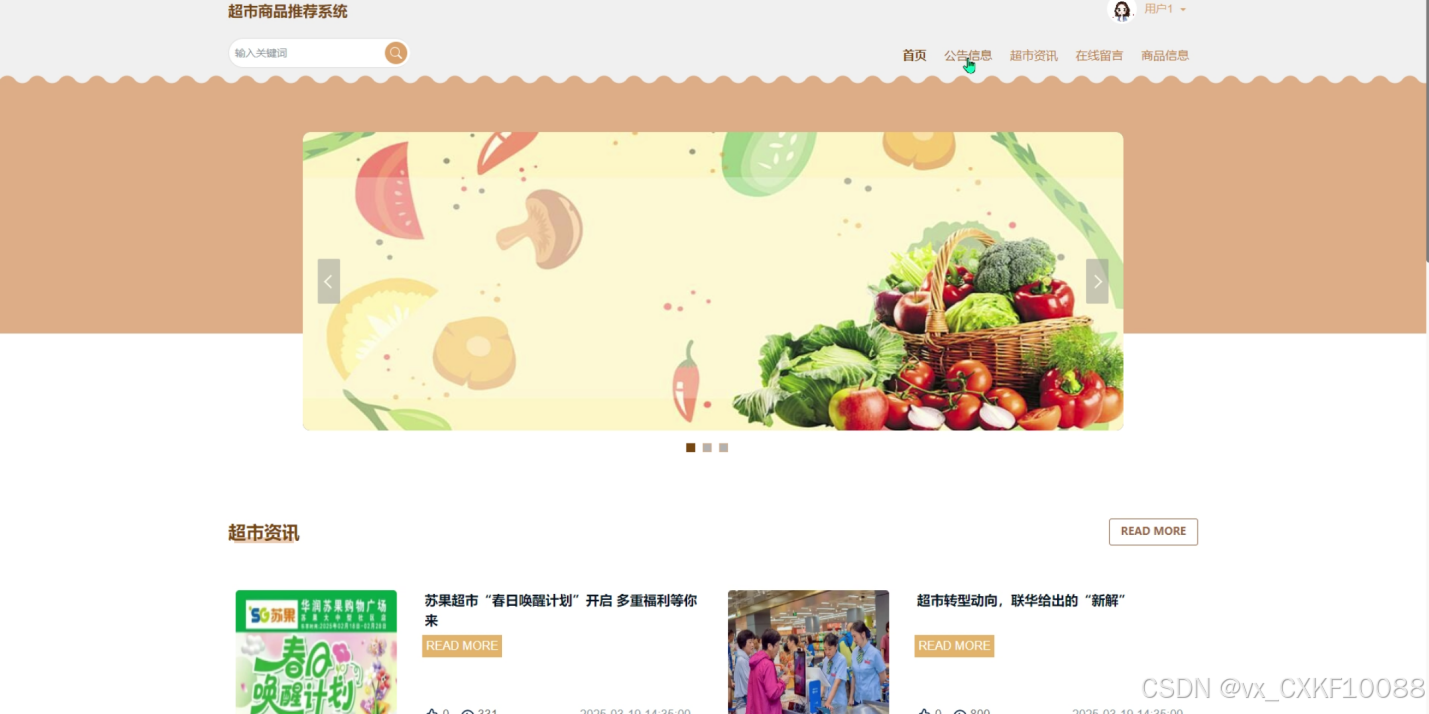 (5)商品信息:用户可以浏览超市提供的所有商品详情。