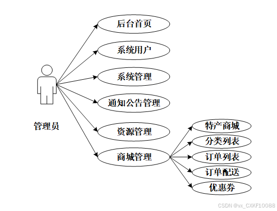 功能需求分析是对基于微信小程序的土特产商城系统所需功能进行详细描述的过程。通过分析用户需求、业务流程和技术架构,明确系统的目标、功能模块及其相互关系,从而确保系统能够满足实际需求,并具备良好的可用性、可维护性和扩展性,为后续的系统开发和测试提供明确的指导。