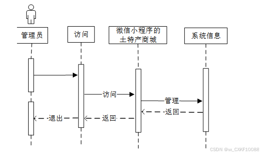 管理员通过访问系统发起请求,系统接收访问后转向系统信息模块进行管理操作。管理完成后,系统返回管理结果至系统,最终反馈给管理员,管理员可选择退出。管理员管理系统信息时序图如图4-6所示。