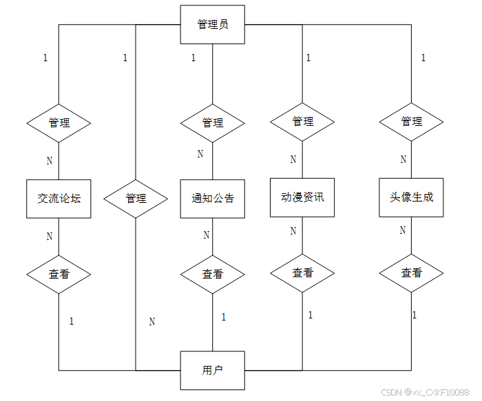 数据库实体设计是数据库设计的关键步骤,对实际业务逻辑中涉及的实体及其属性进行抽象建模,明确系统中的主要信息对象及其关系。在实体设计中,根据需求分析确定系统的核心实体,如用户、角色、权限、动漫资讯等,提取实体的主要属性,如用户的ID、姓名、联系方式,社团的ID、名称、类型等,同时定义各实体之间的关系,包括一对一、一对多、多对多等。在设计过程中,注重实体的完整性、规范性和唯一性,确保设计能够满足系统功能需求,并为后续的表设计提供清晰的结构框架。实体设计需遵循数据库设计的标准化要求,避免数据冗余和不必要的复杂度。