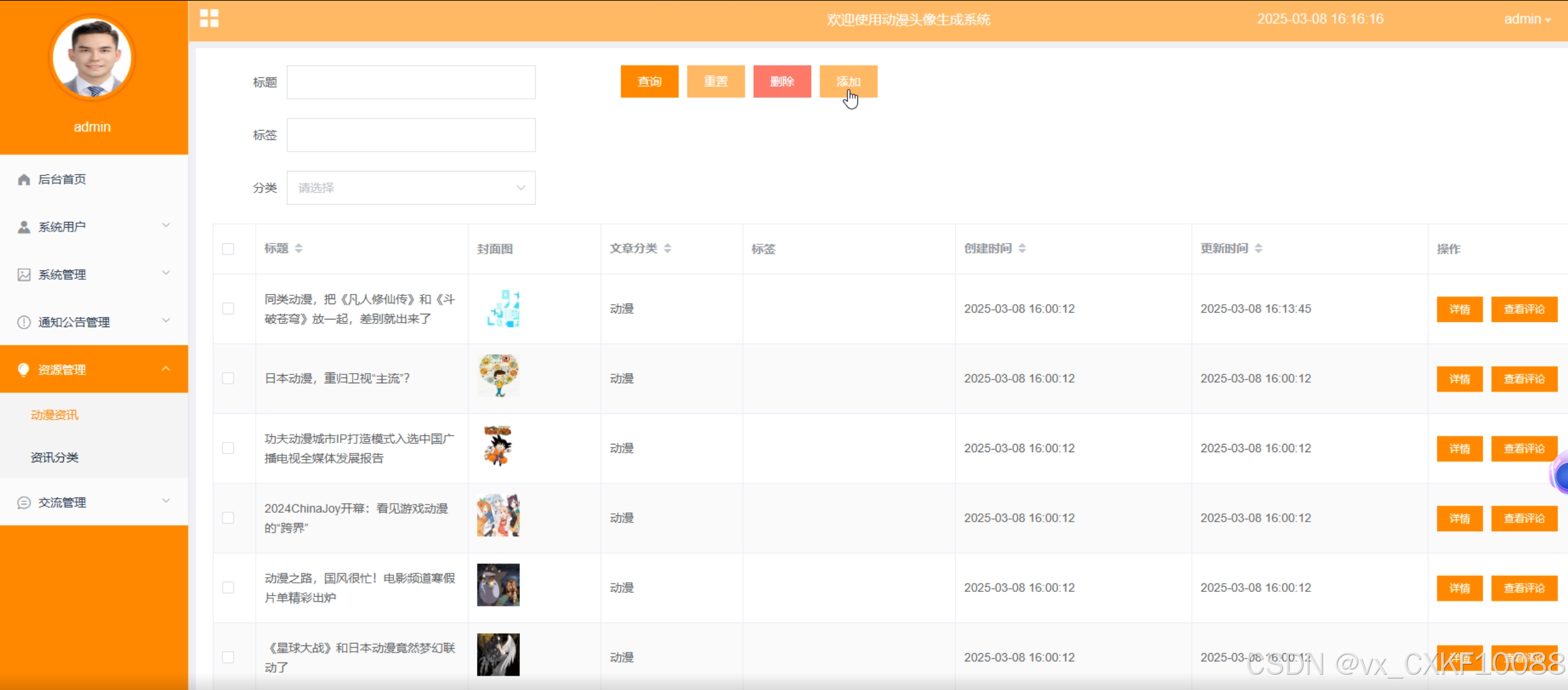 本研究的意义在于通过创新技术的应用,满足了动漫爱好者对于个性化表达和互动交流的深层次需求。在当前数字化快速发展的背景下,构建一个能够自动生成个性化动漫头像并提供丰富互动功能的平台,不仅增强了用户的参与感和归属感,还促进了动漫文化的多样性和创新性发展。此系统利用先进的图像处理算法与百度云AI能力,结合Python、Django框架及MySQL数据库,为用户提供了一个稳定高效的服务环境。此外,通过管理员对平台内容的严格管理,确保了信息的质量和安全性,营造了健康积极的网络社区氛围。本研究不仅推动了动漫文化在网络空间中的进一步传播与发展,也为其他领域的个性化数字内容创作提供了参考和借鉴,具有重要的理论价值和实际应用前景。