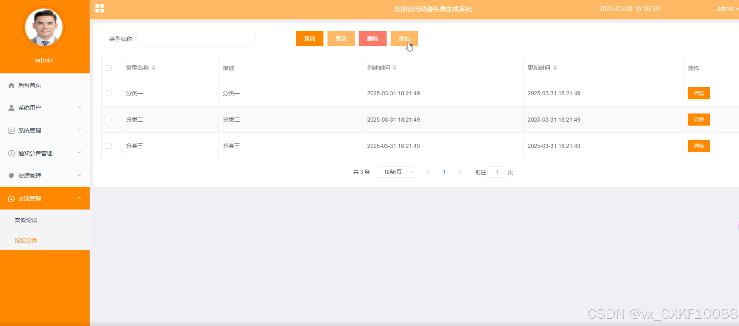 管理员可以监督并管理交流论坛的内容,包括审核新发布的帖子、回复及评论,确保所有内容符合社区指南和法律法规。此外,还可以直接参与讨论,解决用户间的争议,促进健康的社区氛围。交流管理界面如图5-11所示。