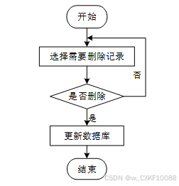 用户选择需要删除的记录后,系统判断是否确认删除。若未确认,返回选择环节;若确认删除,则更新数据库,删除对应记录,完成操作后流程结束。删除信息流程图如图3-8所示。