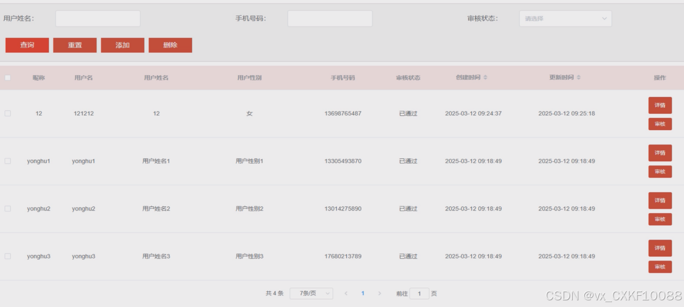 管理员对平台上的用户账户进行集中管理。管理员可以审核、添加、编辑或删除用户信息。系统用户界面如图5-8所示。