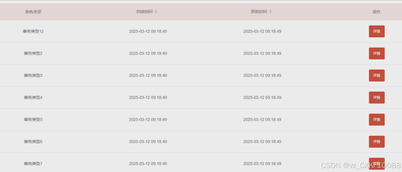 管理员可查看事务分类列表,可以创建新的事务类型,编辑或删除现有的类型。界面展示如图5-9所示。