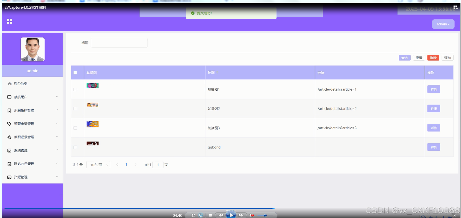 系统管理:管理员可以管理网站的轮播图、调整页面内容,确保网站视觉效果和信息的更新。