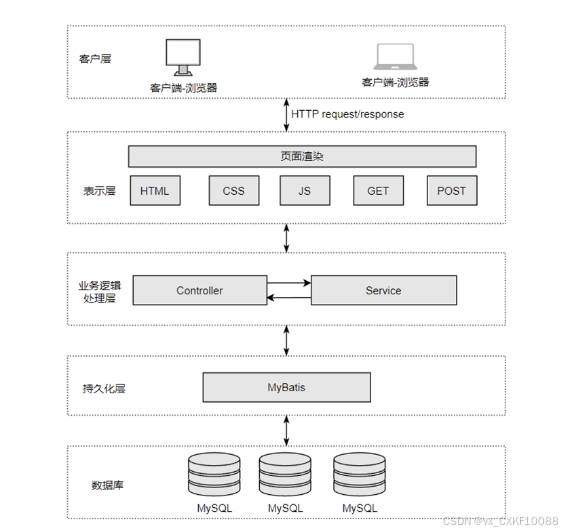 B/S(Browser/Server)架构是一种网络架构模型,其主要特点是客户端通过浏览器与服务器进行通信,所有的业务逻辑和数据处理都在服务器端完成,客户端仅负责展示数据[2]。B/S架构本质上是一种客户端-服务器模式的变体,它通过将传统的C/S(Client/Server)架构中的客户端功能移到浏览器中,简化了客户端的开发和维护工作。在B/S架构中,用户通过浏览器发送请求,浏览器负责展示从服务器获取的数据,服务器则处理请求并返回响应。该架构避免了安装和配置客户端软件的麻烦,也减少了对客户端硬件的依赖,适合于需要大规模部署和跨平台支持的应用系统。