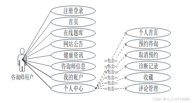咨询师用户角色用例如下图所示。