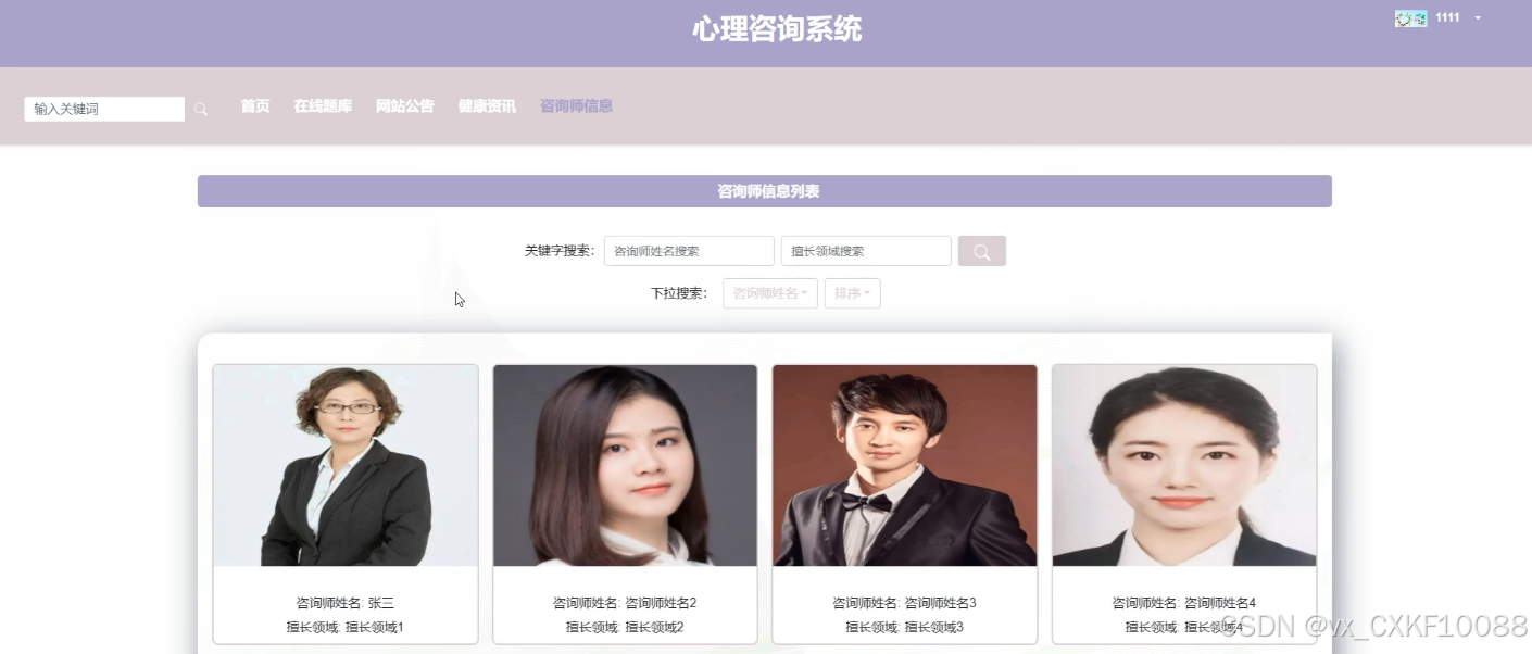 - 咨询师信息:用户可以查看咨询师的详细信息,并对咨询师进行点赞、收藏和评论,还可以直接预约咨询师的服务。他们将为用户提供专业的健康咨询和心理支持。