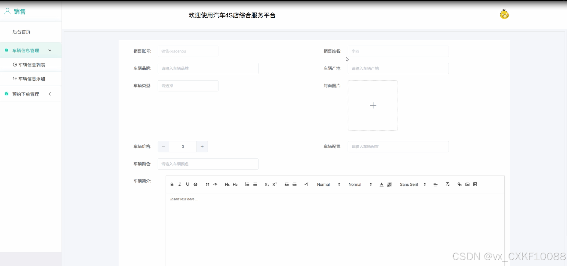 车辆信息管理:销售人员可管理车辆信息,包括新增、修改、删除车辆信息及更新车辆库存。