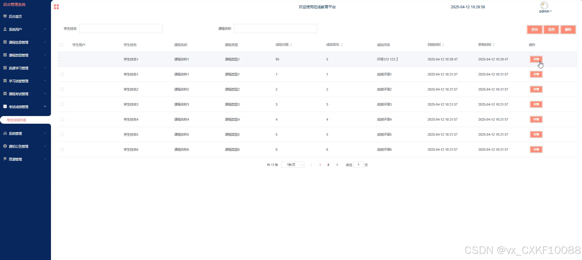 考试成绩管理:收集并处理学生的考试成绩数据,支持成绩录入、修改和查询,同时为成绩分析提供基础数据支持,助力教学质量提升。