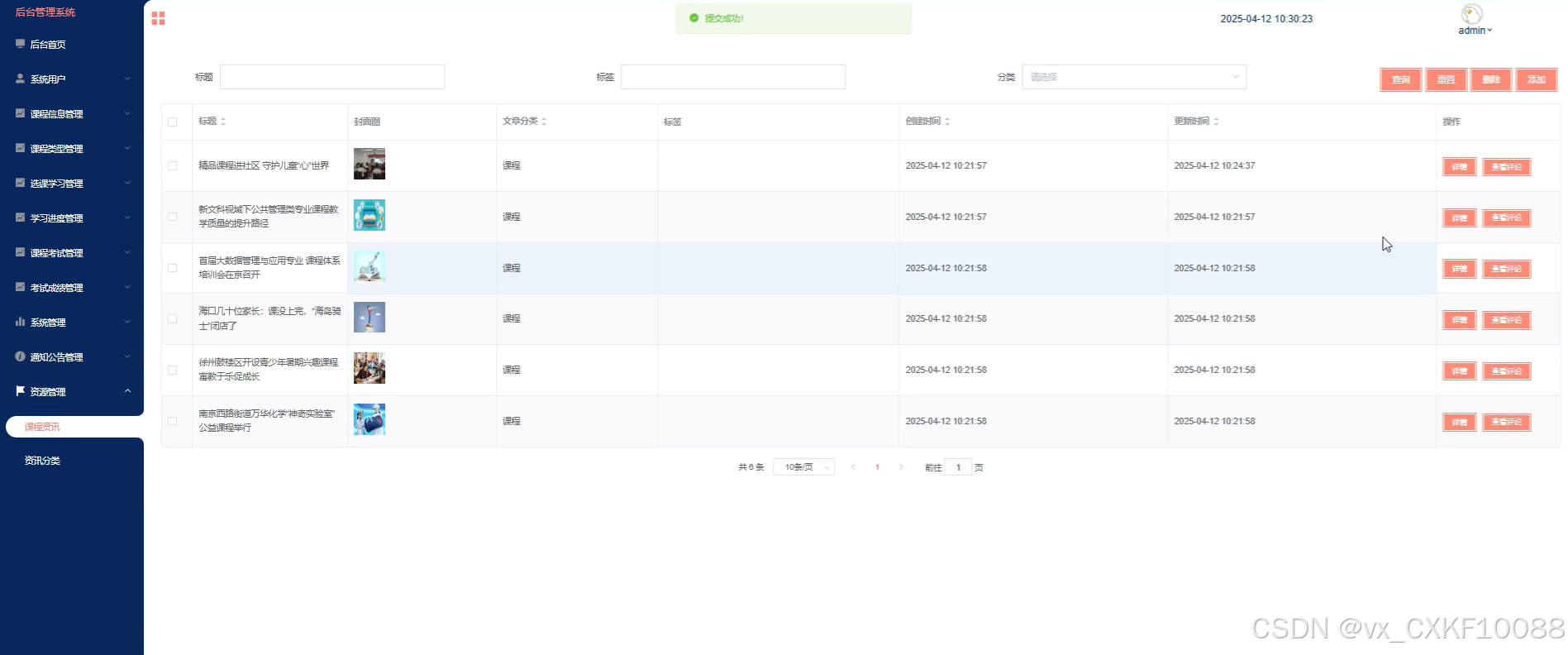 系统管理 - 轮播图管理:上传和管理首页轮播图内容,用于展示重要通知或推广优质课程资源,吸引学生注意力,增加曝光率。