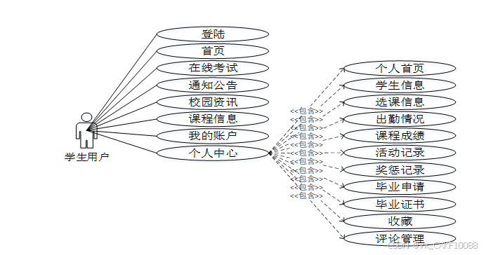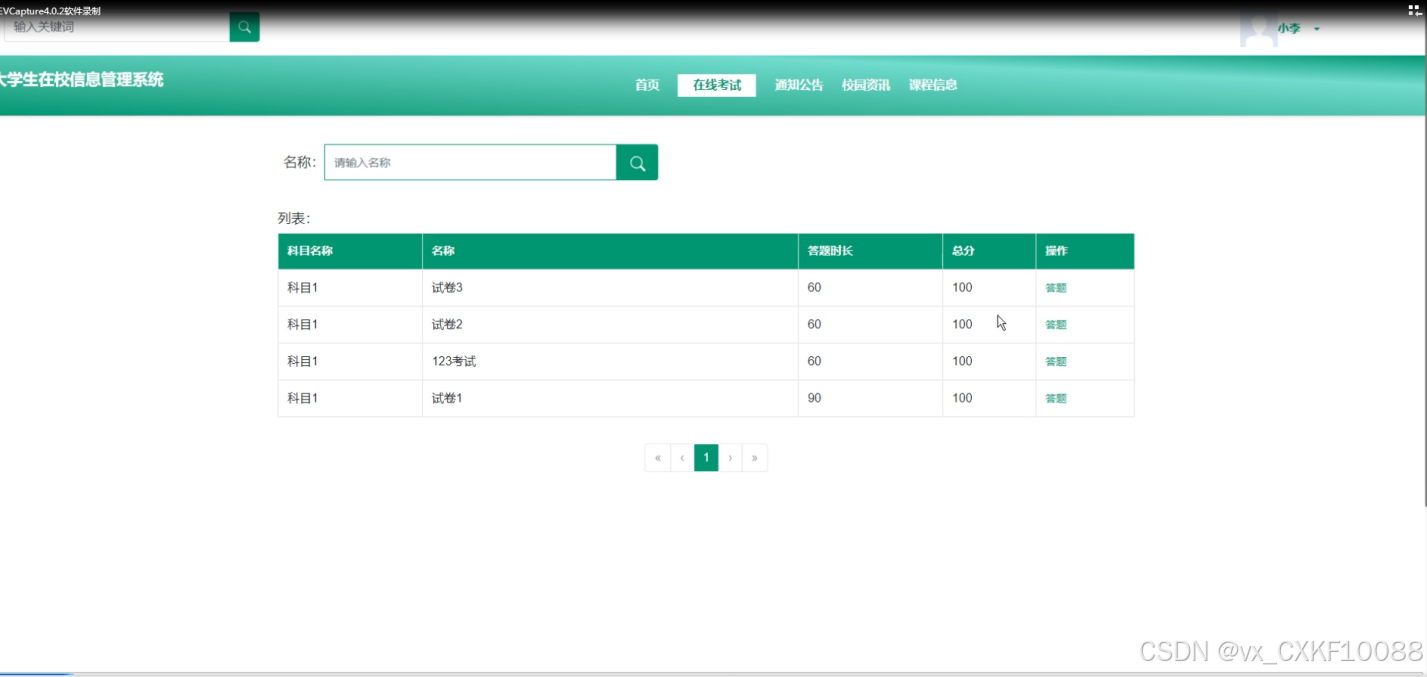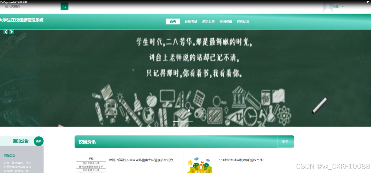 - 首页:学生用户可以在此页面查看浏览最新的校园资讯和通知公告,快速进入在线考试和课程信息页面。