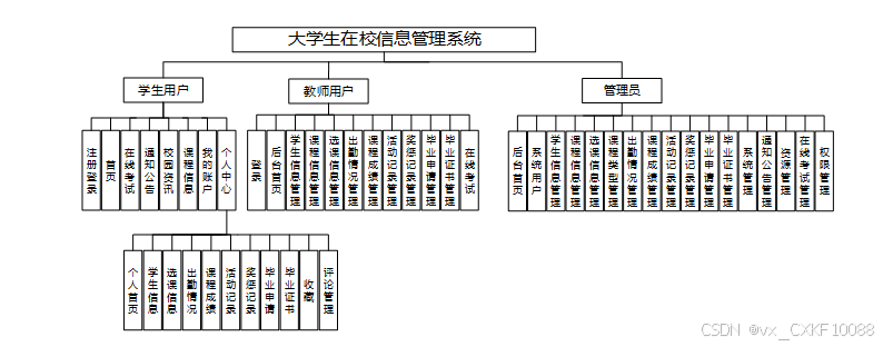 大学生在校信息管理系统划分为了前端模块和后端模块两大部分。