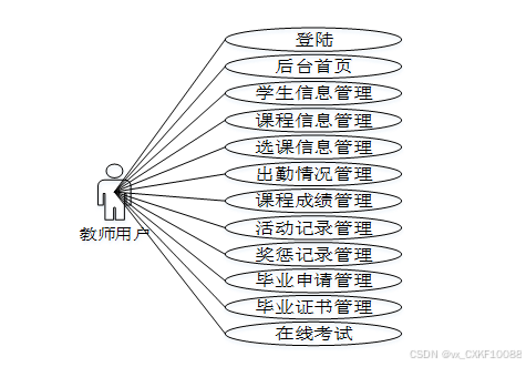 - 后台首页:教师用户可以在此页面查看所有的系统功能。通过这些功能,教师用户能够有效地维护系统的正常运行,保障教学活动的顺利进行。