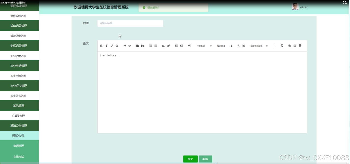 通过实际使用反馈,我们不断对系统进行优化和改进,以提升用户体验和系统性能。未来,我们将继续探索更多先进的技术手段,以进一步完善大学生在校信息管理系统,为校园生活带来更多便利。