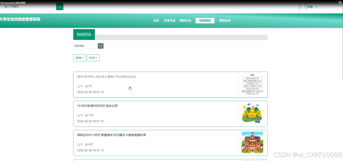 - 校园资讯:学生用户可以在此页面查看浏览学校各类新闻资讯,获取校园动态。