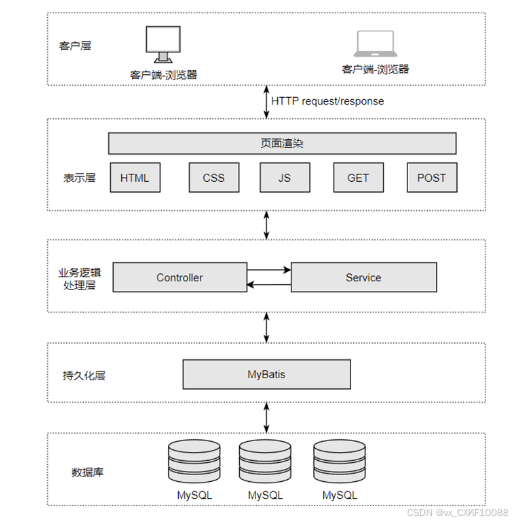 B/S架构通常采用Web技术进行实现,包括HTML、CSS和JavaScript等。用户在浏览器中发起请求,服务器响应并返回数据。数据传输通常通过HTTP或HTTPS协议进行,B/S架构的灵活性使其适用于在线购物、信息管理系统和社交网络等各类应用场景[4]。由于其易于扩展性,B/S架构可以方便地支持大规模用户访问,适应不断变化的业务需求。