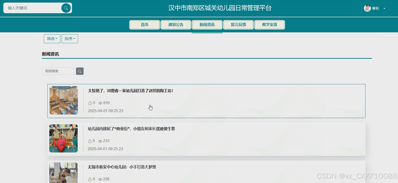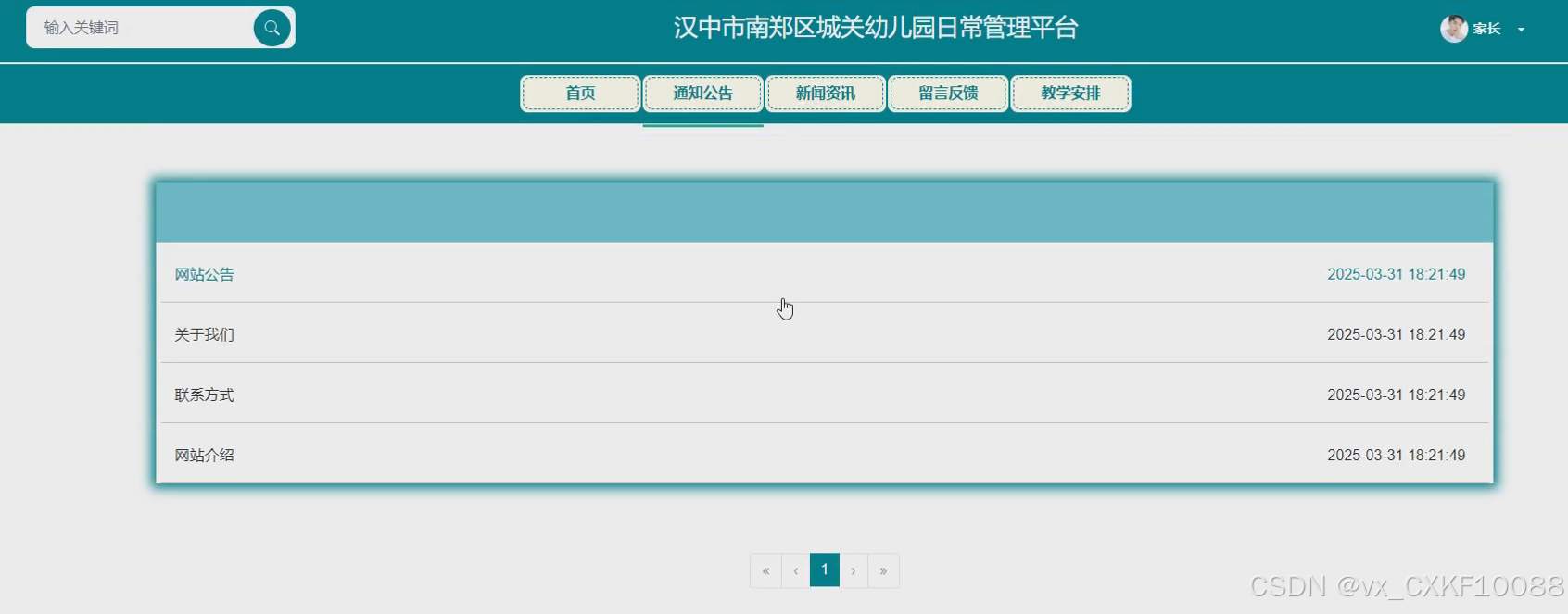 - 首页:登录后,家长进入平台首页,能快速查看通知公告、新闻资讯、教学安排等关键信息,简洁的页面设计帮助家长轻松导航。