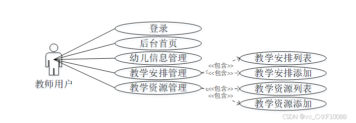 汉中市南郑区城关幼儿园日常管理平台用例分析主要从家长用户、教师用户、管理员这些实体展开描述。