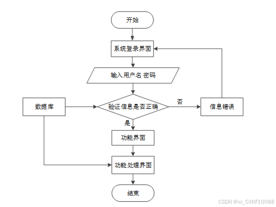 用户访问平台的网站,进入登录页面页面,入其用户名和密码,后端服务接收登录请求,验证用户提供的用户名和密码是否匹配数据库中存储的信息,验证通过即可登录成功。登录流程图如下图所示。