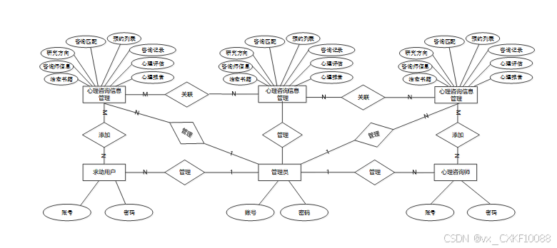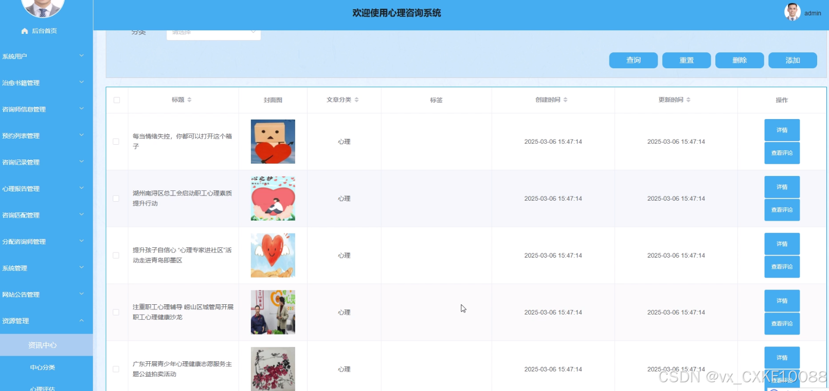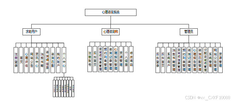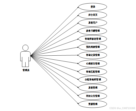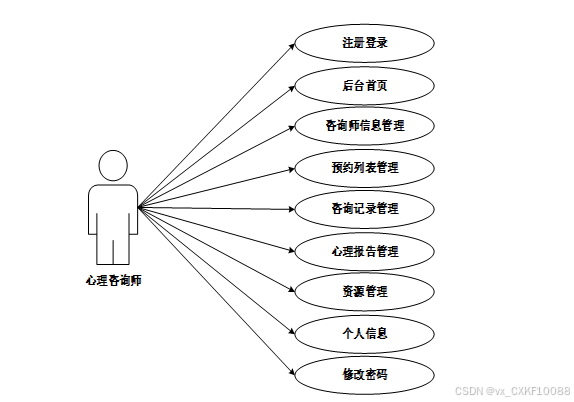 后端系统模块:心理咨询师和管理员,分别在后台系统进行功能操作,具体详情的如下:
