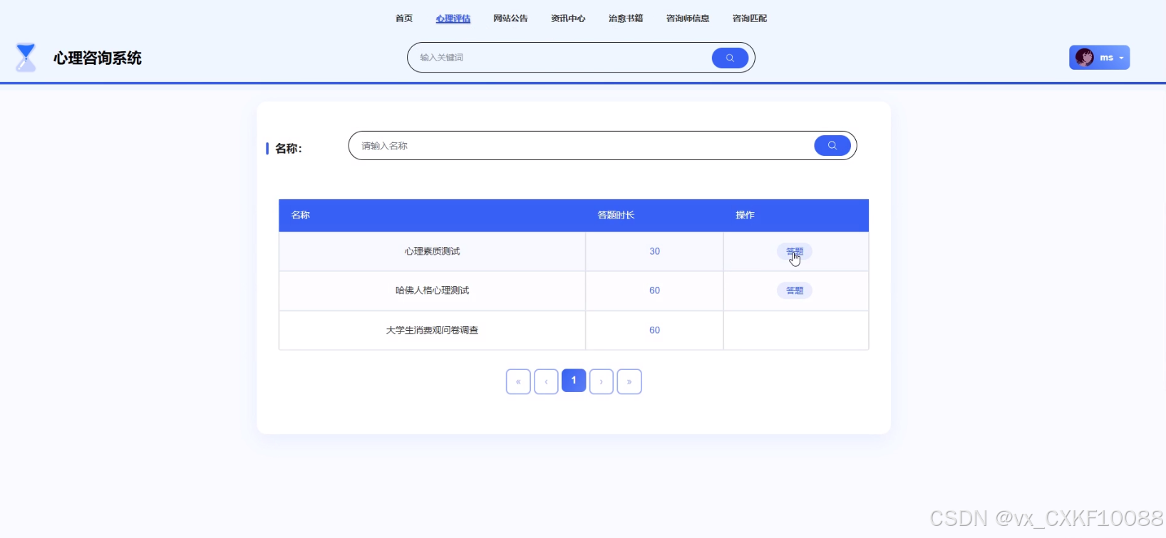Keywords: Psychological counseling system; SpringBoot;Java technology; Vue.
