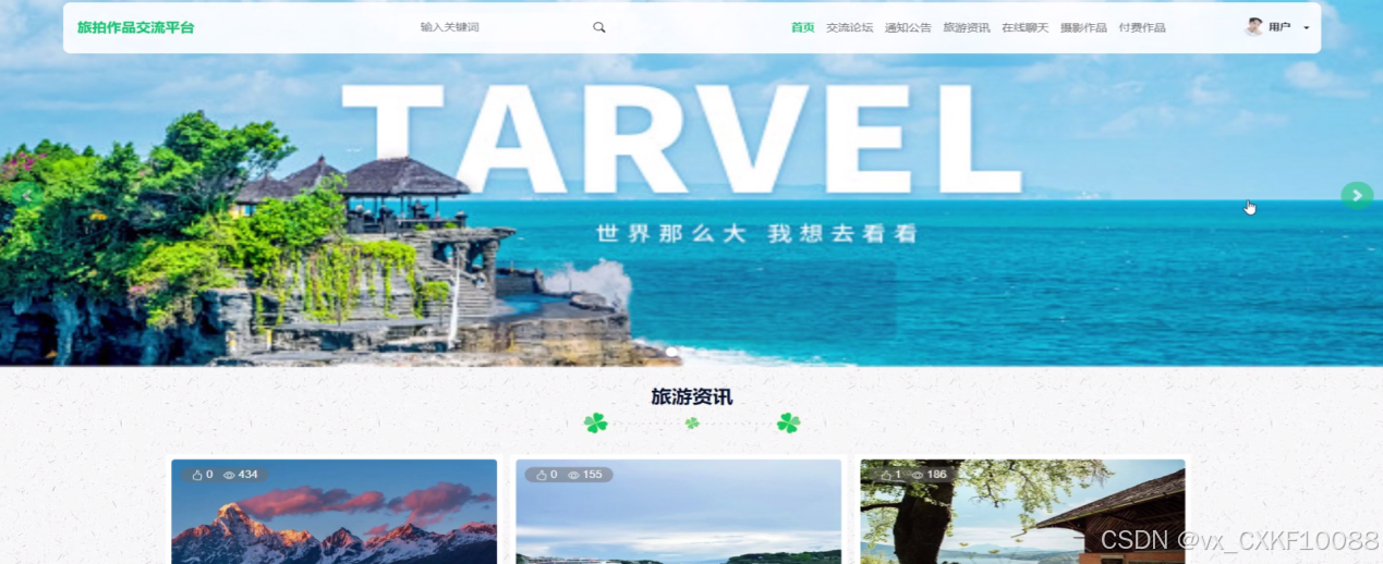 Key words:Travel Planning Guide SystemTravel photography work exchange platform; SpringBoot; Vue; MySQL database.