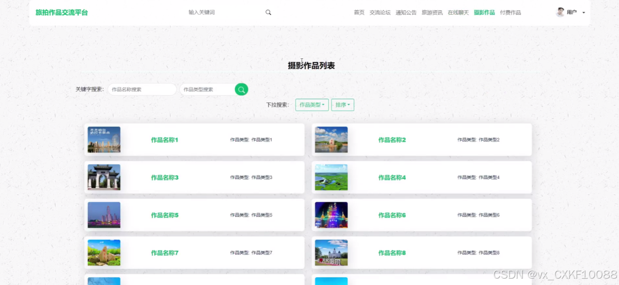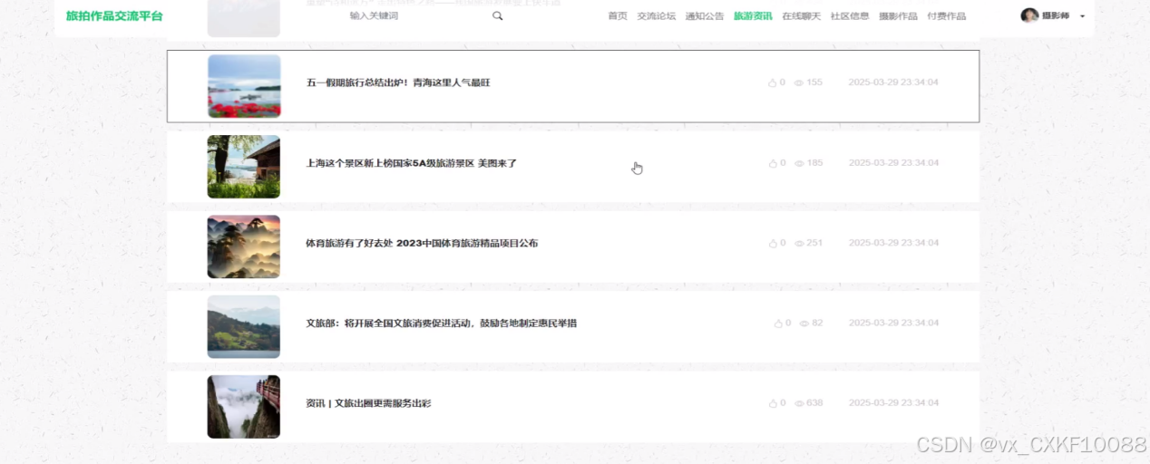 关键词: 旅拍作品交流平台;SpringBoot;Vue;MySQL数据库。