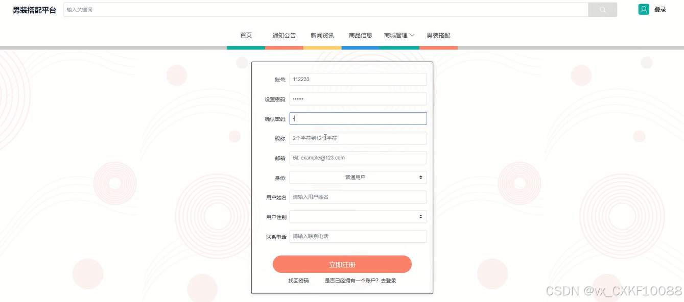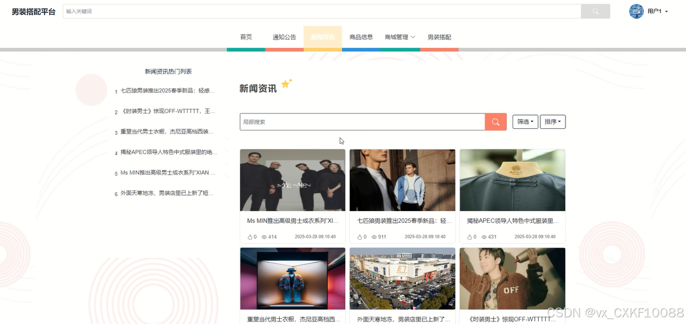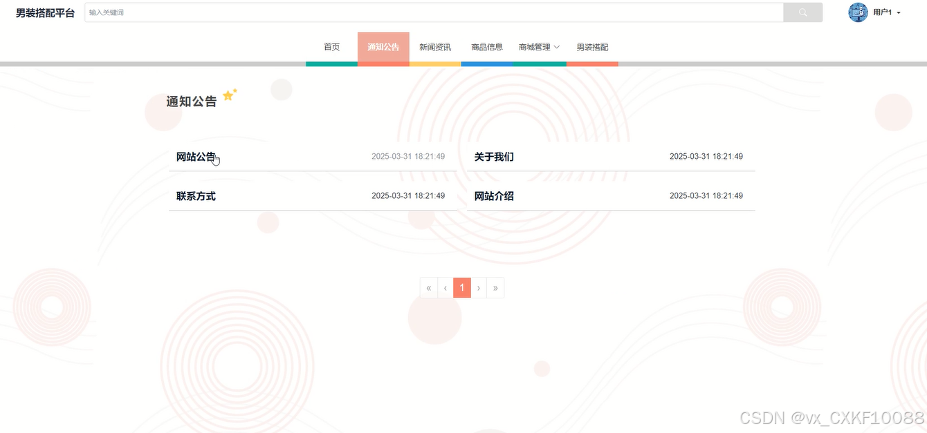 Keywords: Men's clothing matching platform; SpringBoot framework