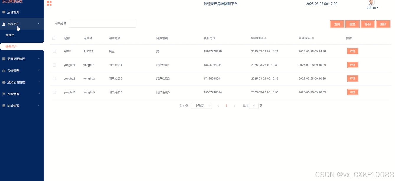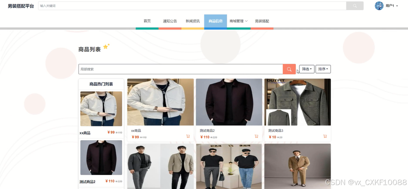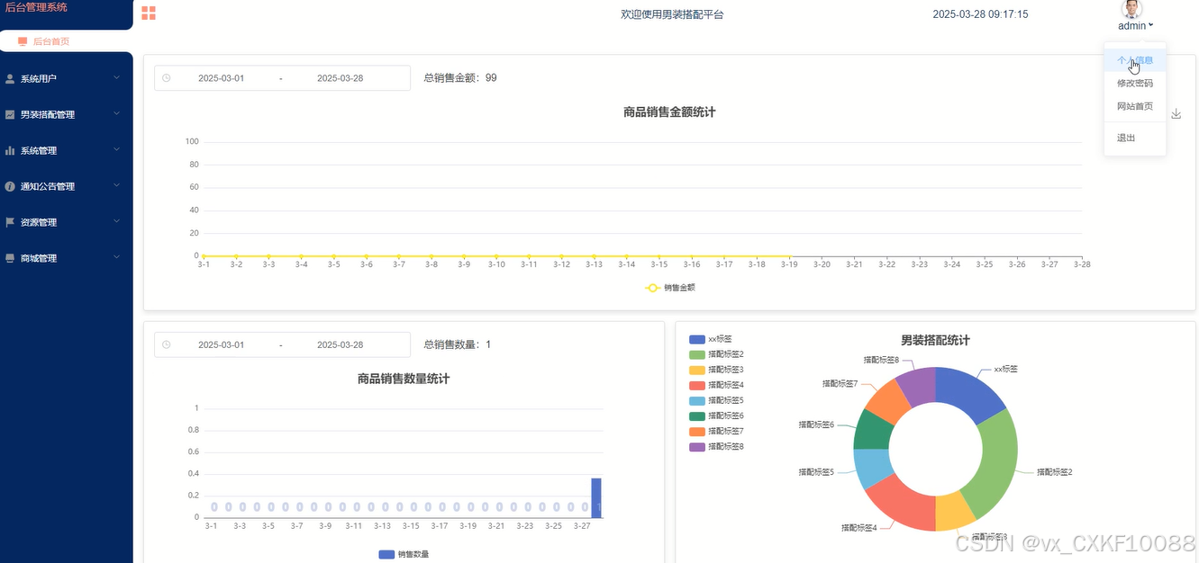 男装搭配平台划分为了普通用户和管理员两大部分。