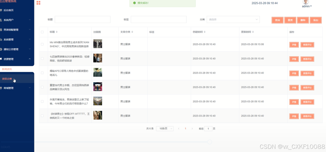 7.资源管理:管理员可以编辑和删除新闻资讯,管理资讯的分类,为用户提供更符合兴趣的阅读内容和信息分类。