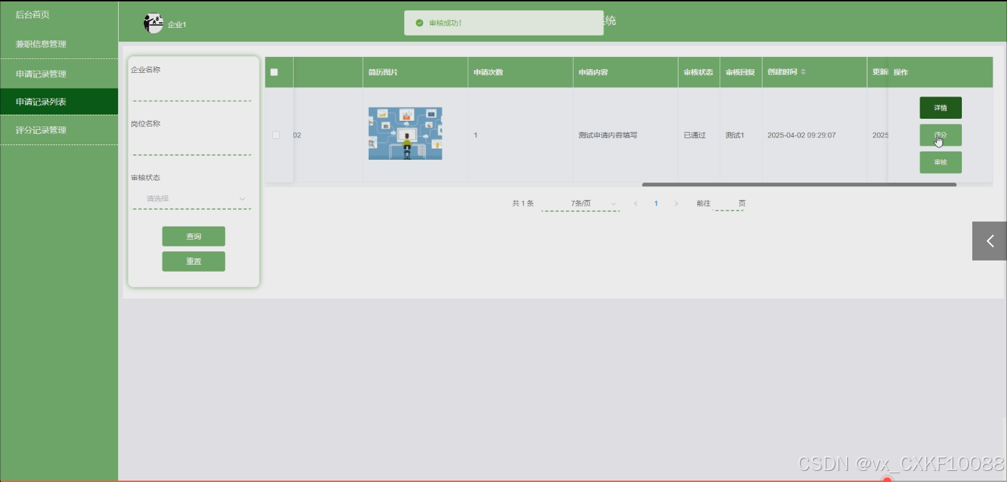 企业的功能有:兼职信息管理、申请记录管理、评分记录管理。